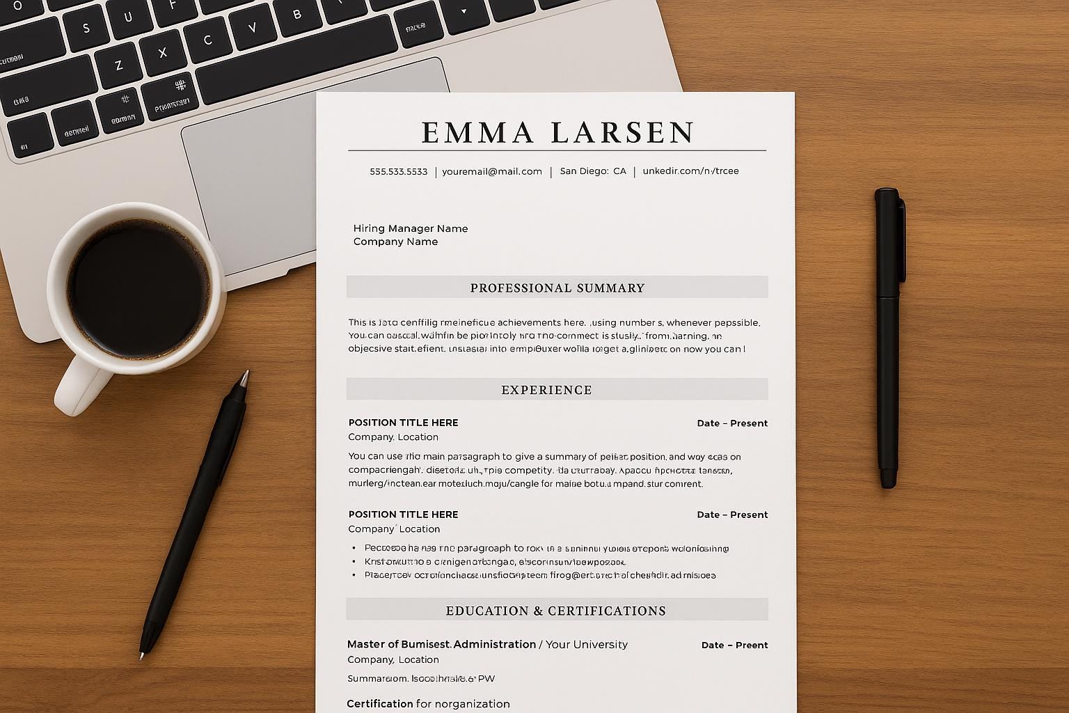Edit Your Template – Customize text, fonts, and sections with your own details. Add/remove sections as needed.